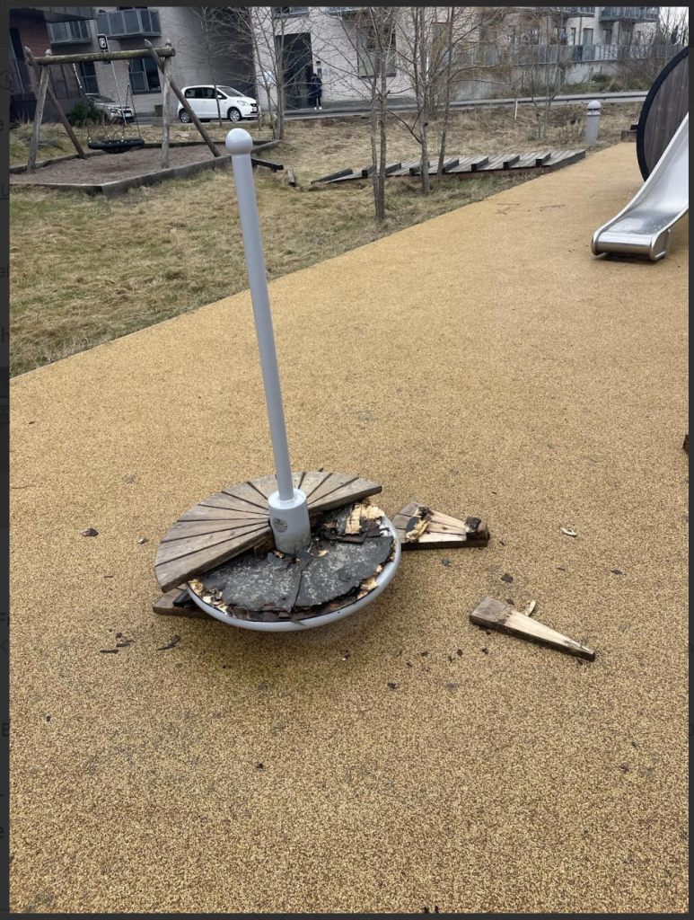 Uanset så er det en ærgelig udgift for os alle – så pas godt på vores legeredskaber og meld det gerne en anden gang i oplever at der opstår en defekt til os på drift@soendrehavn.dk .